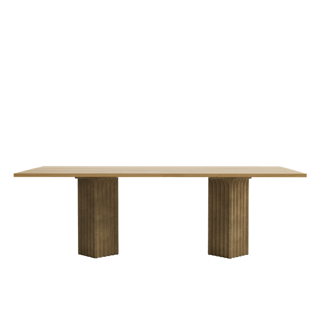 Der Esstisch Arc ist vom inspiriert von und übersetzt architektonische Details in minimalistische Möbelformen mit Stufen und Bögen, die Tiefe und Schatten erzeugen. Die Serie ist als rechteckiger Tisch mit 250 cm und runder Tisch mit 120 cm erhältlich und eignet sich sowohl für große als auch für gemütliche Essbereiche. Die Tischplatte besteht aus massiver Eiche mit tiefem Kaffeeschwarzlack, während der architektonische Lampensockel aus Fasergussbeton besteht und in einem passenden Farbton handbemalt ist. Der Tisch passt perfekt zu den Esszimmerstühlen Brutus und funktioniert auch mit den Esszimmerstühlen Nama oder Hiro. Er besteht aus zwei Teilen, Platte und Lampensockel, die sich einfach mit verdeckten Schrauben zusammenbauen lassen. Der Esstisch Arc kombiniert skulpturale Präsenz mit zeitloser Eleganz. Entworfen von Kristian Sofus Hansen und Tommy Hyldahl.
