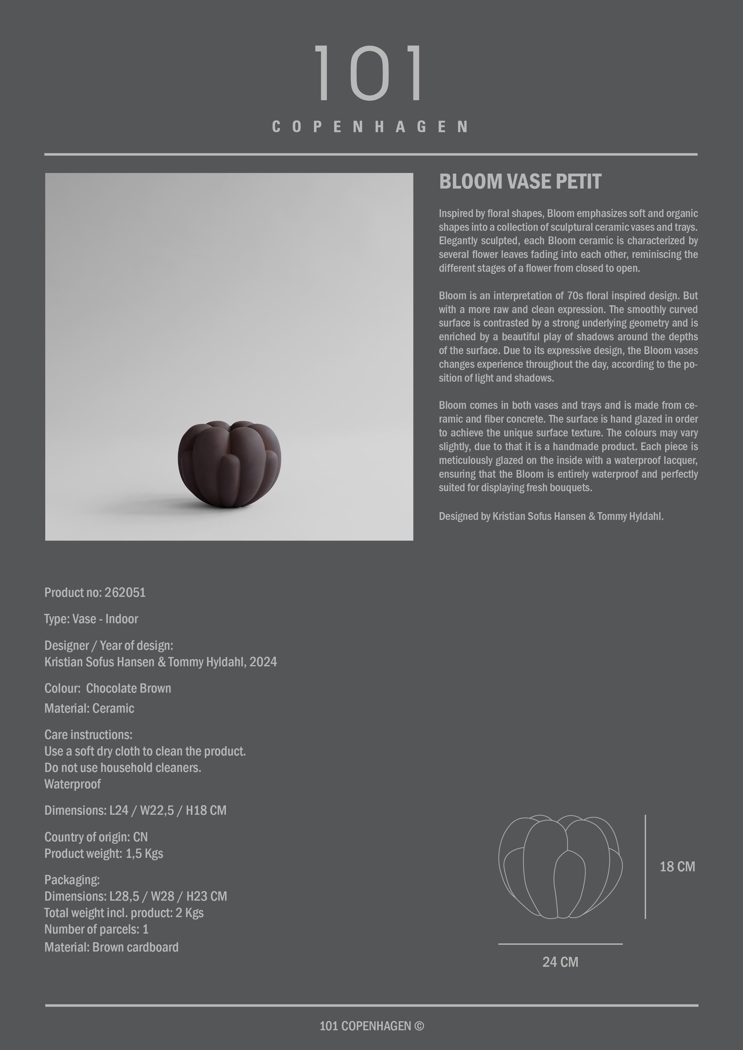101 Copenhagen Bloom Vase Petit Schokoladenbraun