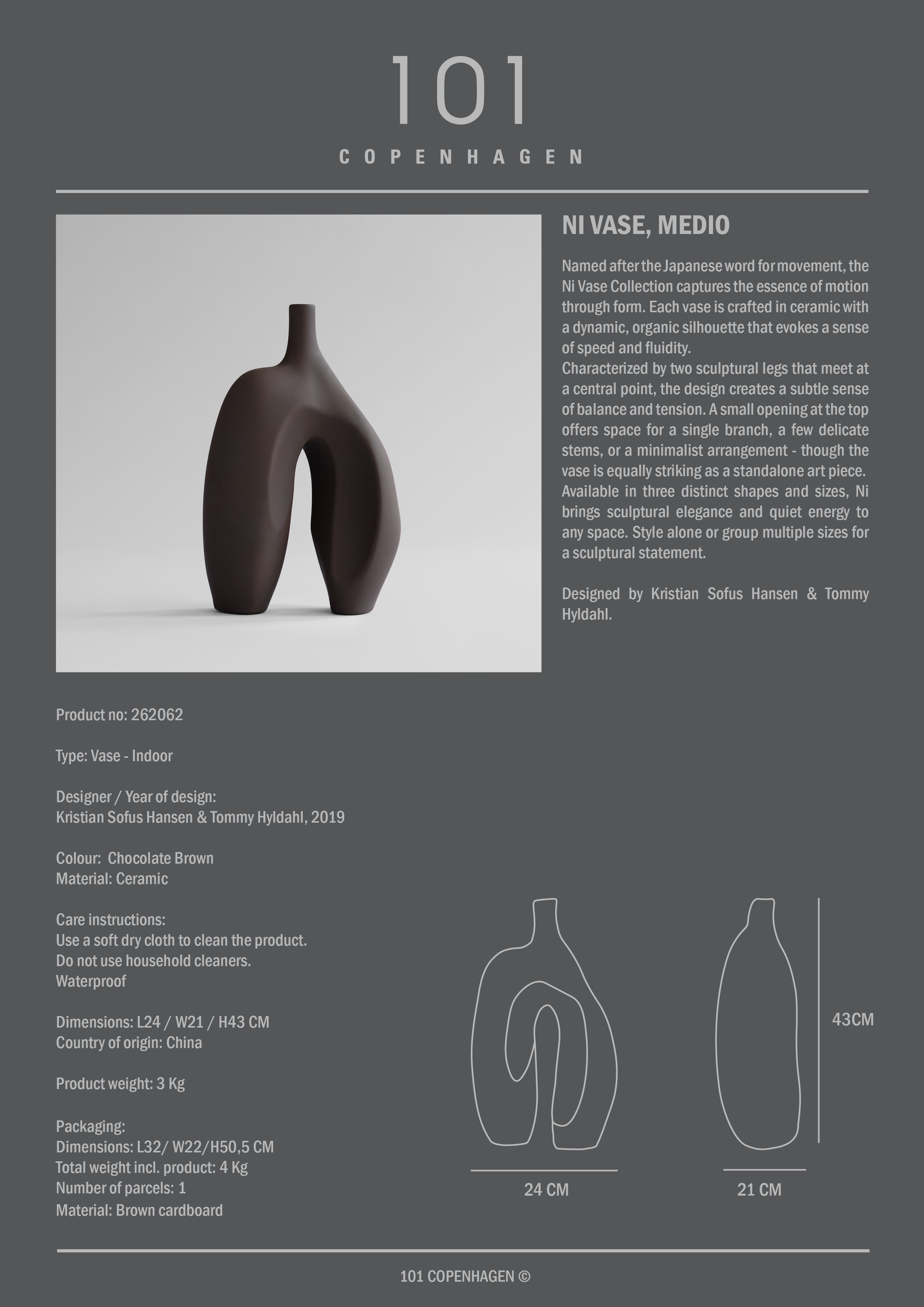 101 Copenhagen Ni Vase Medium Schokoladenbraun