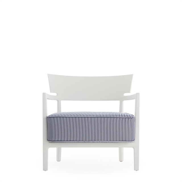 Der Sessel CARA MAT von Kartell vereint Komfort und Vielseitigkeit. Seine einladende, gepolsterte Form trifft auf eine leichte und moderne Konstruktion. Der Sessel eignet sich sowohl für den Innen- als auch für den Außenbereich und ist somit ideal für Wohnzimmer, Lounges, Terrassen und Balkone. Die weichen Kissen sorgen für entspanntes Sitzen, während die strapazierfähigen und wetterfesten Materialien dafür sorgen, dass der Sessel wechselnden Umgebungsbedingungen standhält, ohne Kompromisse beim Komfort einzugehen. Das Design besticht durch eine klare Formensprache und textile Oberflächen, die dem Sessel Wärme und Tiefe verleihen. Die Liberty-Varianten setzen mit ihren charakteristischen Mustern, die einen Kontrast zur klaren Linienführung bilden, zusätzliche Merkmal und verleihen dem Sessel eine individuelle Note. Ein flexibler Lounge-Sessel, der Funktionalität, Komfort und modernes Design in einer gelungenen Gesamtlösung vereint.