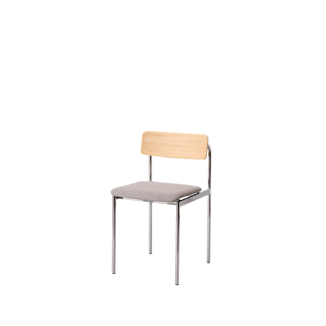 Moebe Offset Esszimmerstuhl, gepolstert, Chrom/lackierte Eiche/Re-Wool 128