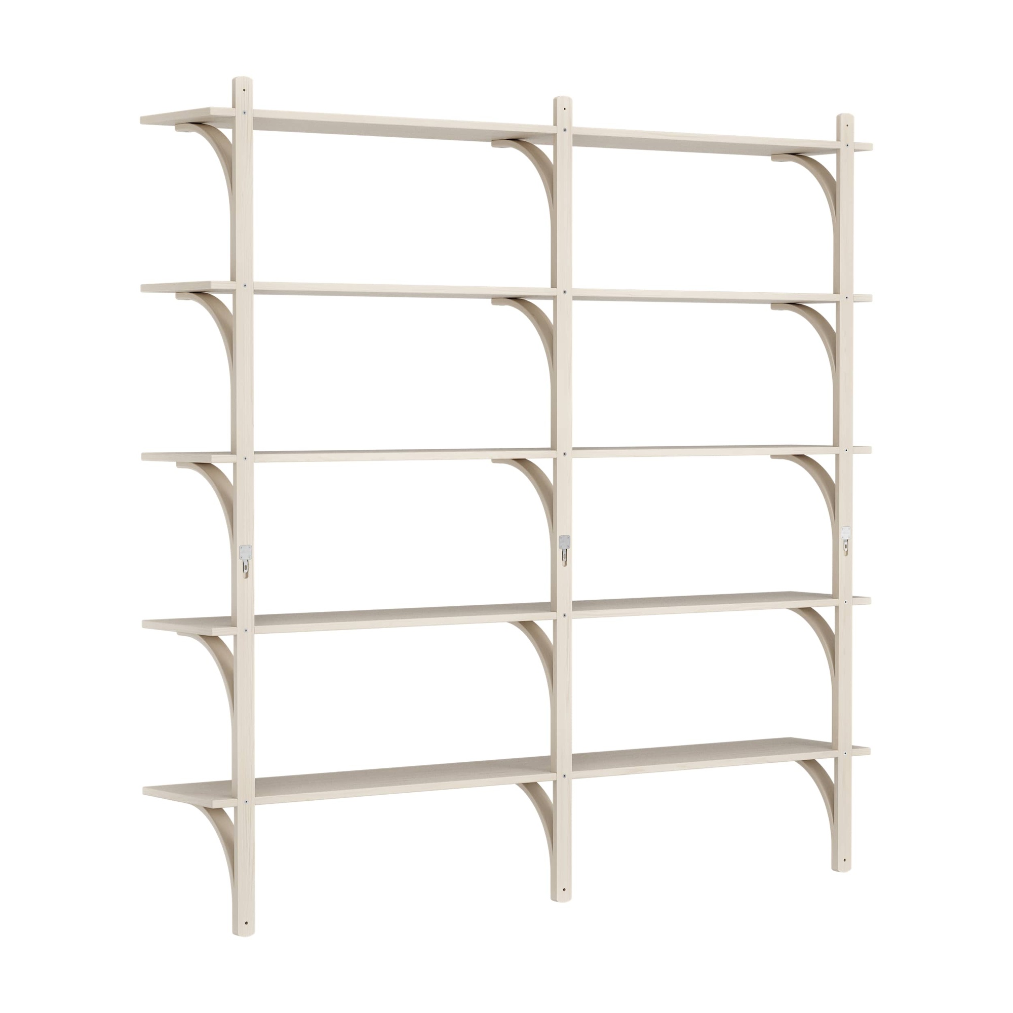 Schwedisches Levi-Regal 180 cm 5 Ablagen Aluminium/ Weiß pigmentierte lackierte Esche