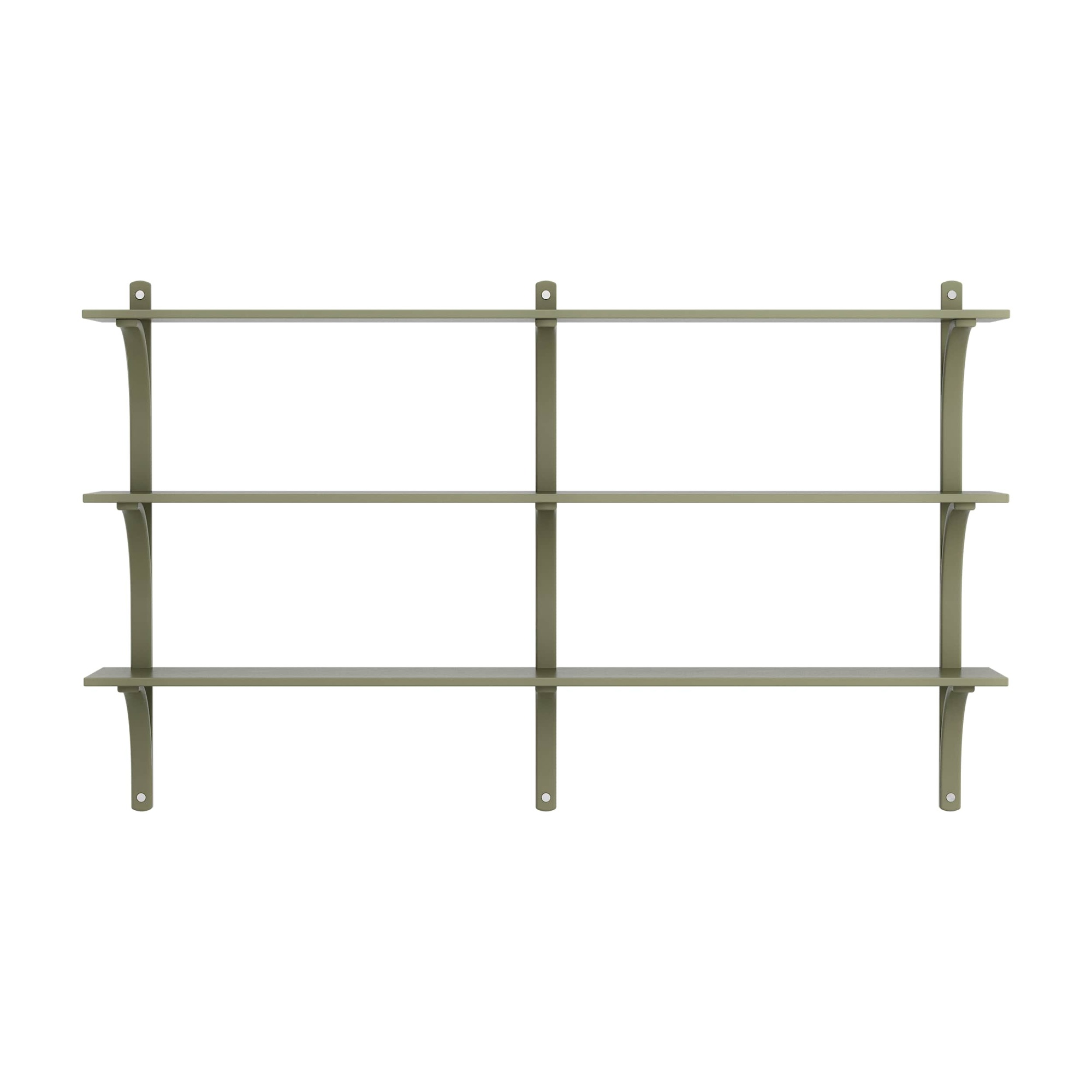 Schwedisches Levi-Regal 180 cm 3-stöckiges Aluminium/ Moosgrün/Esche