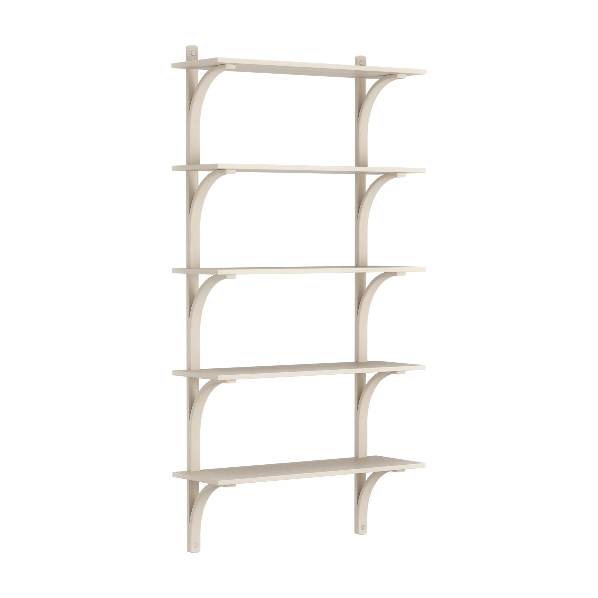 Schwedisches Levi-Regal 90 cm 5 Ablagen Aluminium/ Weiß pigmentiert lackierte Esche